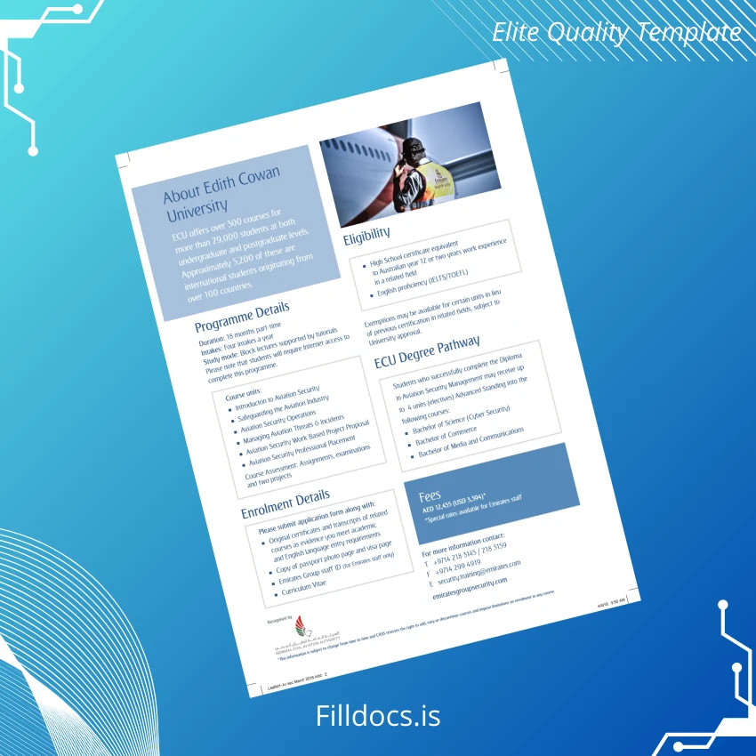This Australia Edith Cowan University Diploma in Aviation Security Management Template – Word/PDF is a premium, fillable certificate designed for seamless customization and professional presentation. Ideal for educators, institutions, and individuals seeking a precise and elegant replacement diploma or novelty diploma design, this versatile template allows users to create a polished document instantly on Word or PDF platforms. With easy editing features, it addresses the needs of those who require an accurate and quick diploma solution that maintains academic integrity and aesthetic quality.