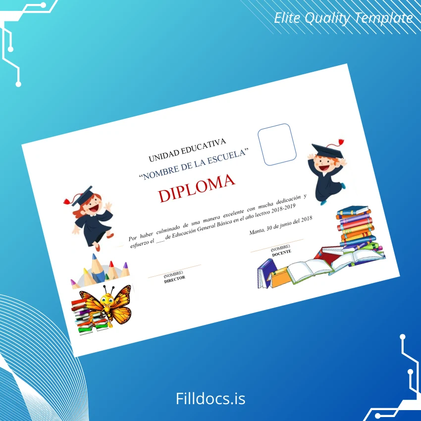 The Bolivia Unidad Educativa _Nombre de la Escuela_ Diploma in Basic General Education Certificate Template – Word/PDF is a professionally designed, fillable digital diploma form tailored for educational institutions and administrators seeking an efficient way to issue official educational credentials. This high-quality, customizable degree template combines elegance and functionality, making it a perfect solution for those in need of a reliable and visually appealing certificate.