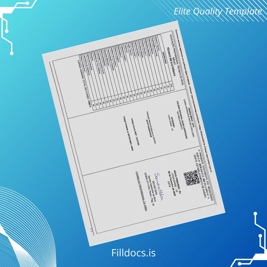This Brazil Centro de Qualificação Técnica Diploma in Electronics Template – Word/PDF is a meticulously designed, customizable diploma form ideal for professionals seeking a reliable replacement diploma or a blank diploma form. Crafted to meet the highest standards, this digital diploma download offers an easy-to-use editable diploma template that allows seamless personalization directly within Word or PDF formats.