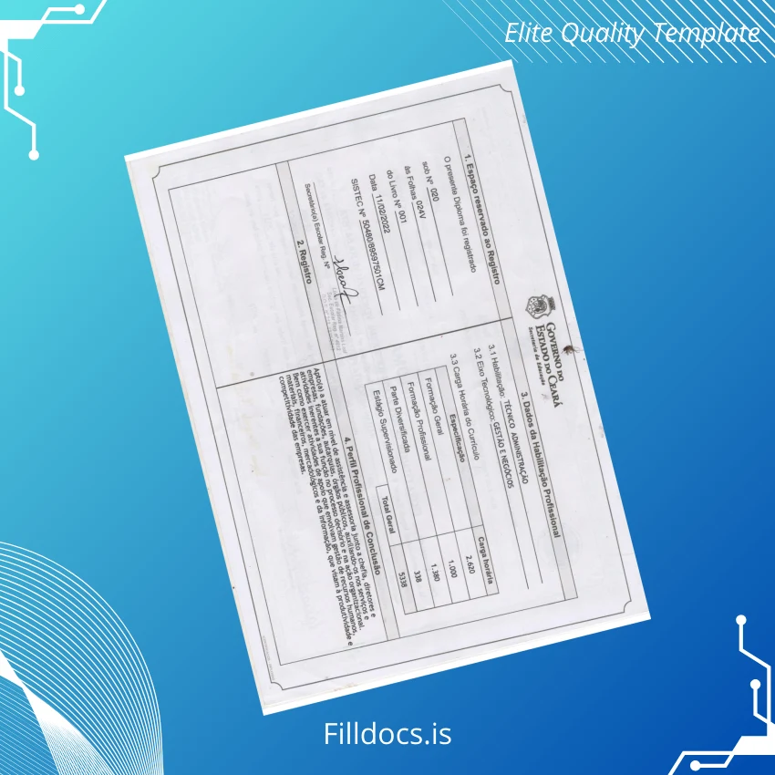 This Brazil Escola Estadual de Educação Profissional Venceslau Vieira Batista Technical Diploma Template in Word and PDF formats is a professionally designed, fillable diploma certificate tailored for educational institutions and professionals seeking a reliable replacement or customizable diploma solution. Its editable structure allows users to seamlessly modify all essential details, ensuring authenticity and personalization with ease.