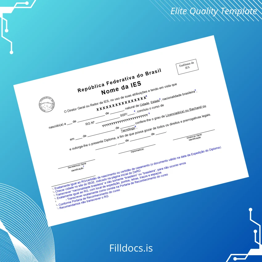 This template is a digital, editable diploma form specifically formatted for the Brazil Federal University of São Carlos graduation certificate. It offers a digital diploma download that allows users to modify content such as names, dates, and titles directly within the provided Word and PDF files. As a novelty diploma design, it bridges classic diploma aesthetics with modern customization flexibility, making it suitable for replacement needs, personal use, or professional presentations.