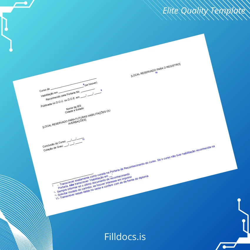 This Brazil Federal University of São Carlos Graduation Diploma Template – Word/PDF is a professionally designed, fillable document tailored for individuals seeking a seamless, customizable solution for diploma replacement or personal keepsakes. Crafted with attention to detail, this template supports easy editing of all essential details, ensuring a precise and elegant final certificate.