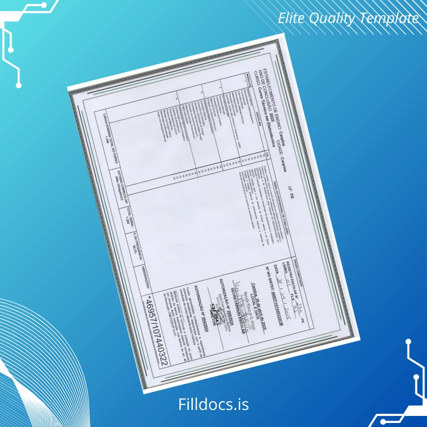 Discover the Brazil Grau Técnico Technical Diploma Template – Word/PDF, a versatile and professional fillable diploma designed to meet the needs of technical graduates and institutions worldwide. This digital diploma download offers an editable format, enabling users to customize every detail effortlessly. Ideal for replacement purposes or creating novel certificates, the template blends traditional authenticity with modern ease of use.