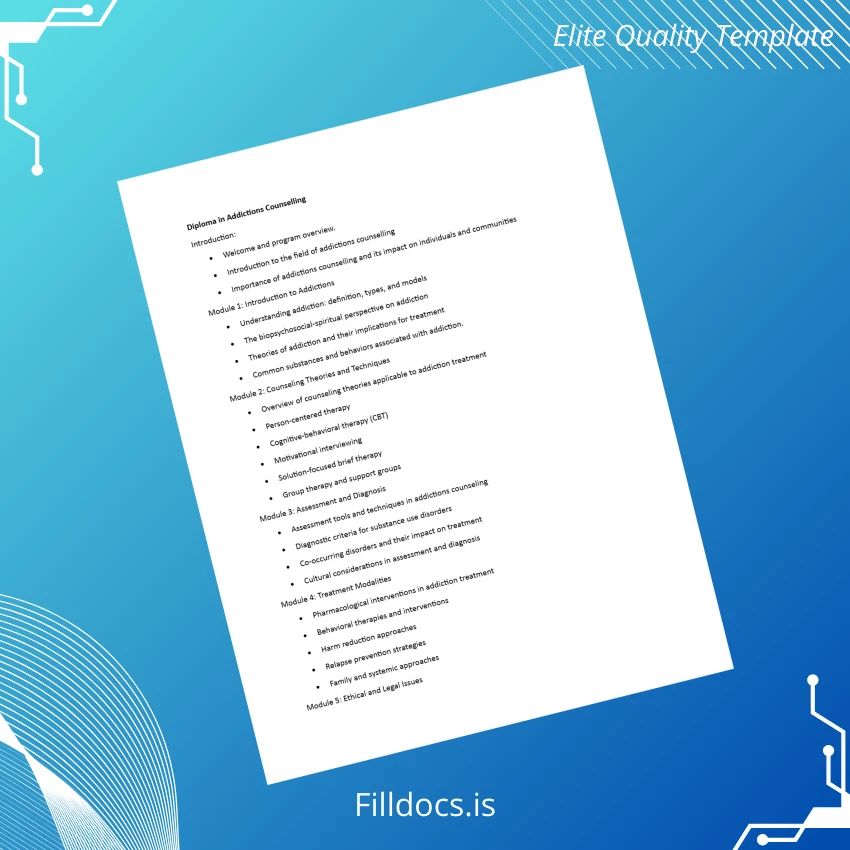 Canada Institute Name Diploma in Addictions Counselling Template – High Quality Word & PDF 7 Page