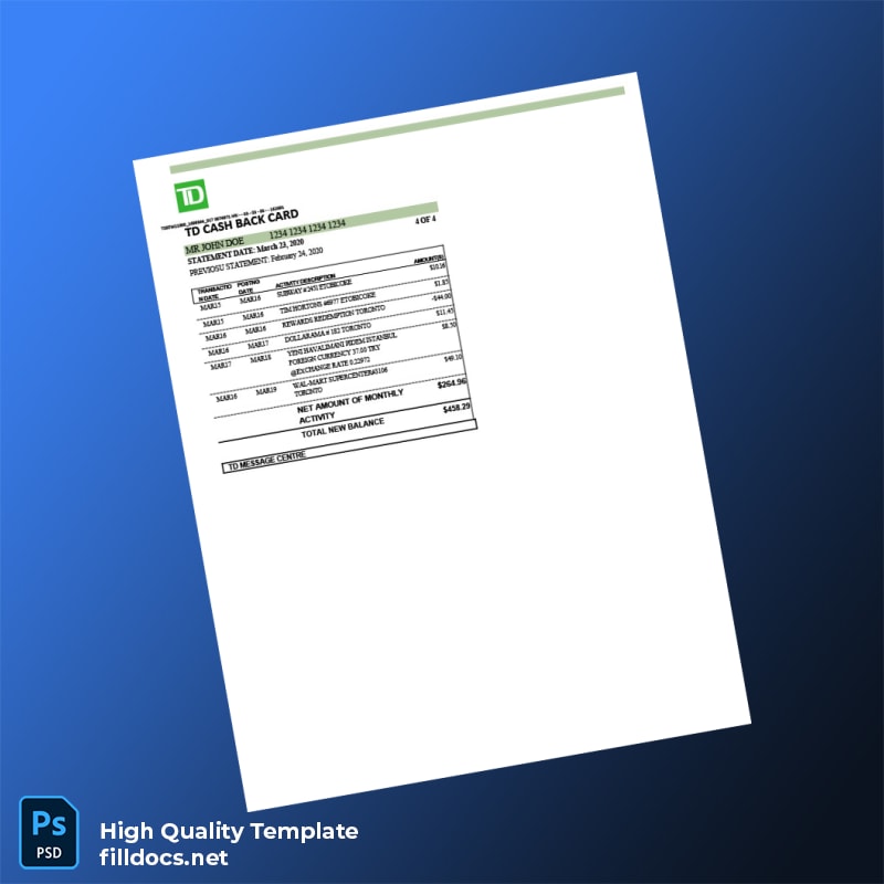 Don’t let missing documents slow you down. By leveraging the Canada TD Bank Credit Card Statement Template, you can ensure your finances are always in order, enabling you to focus on your core business activities. For those looking for additional options, check out our related bank statement templates and consider the customizable features of an editable bank statement template that suits your further needs.