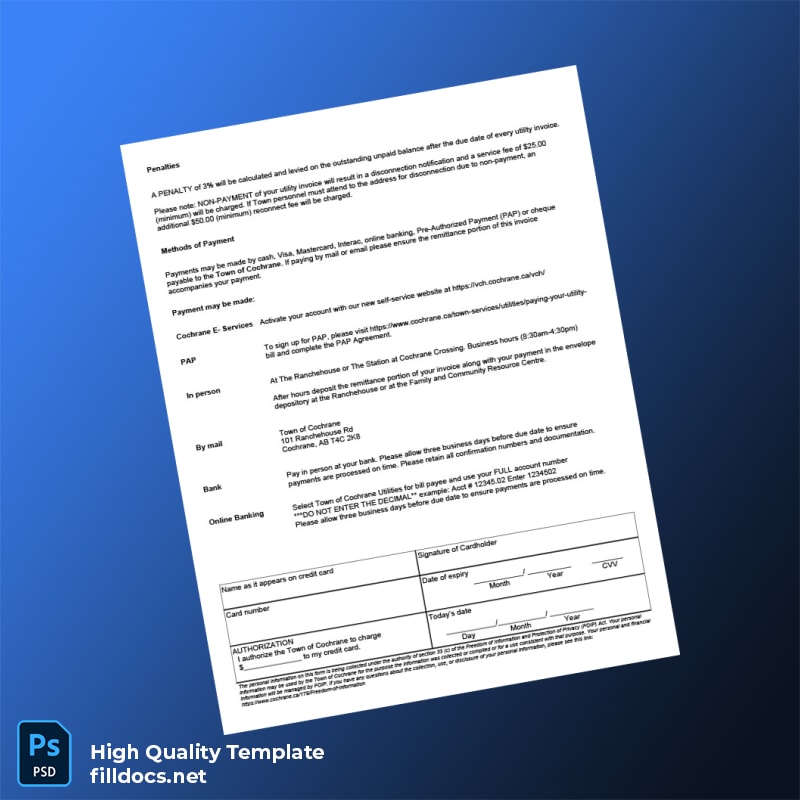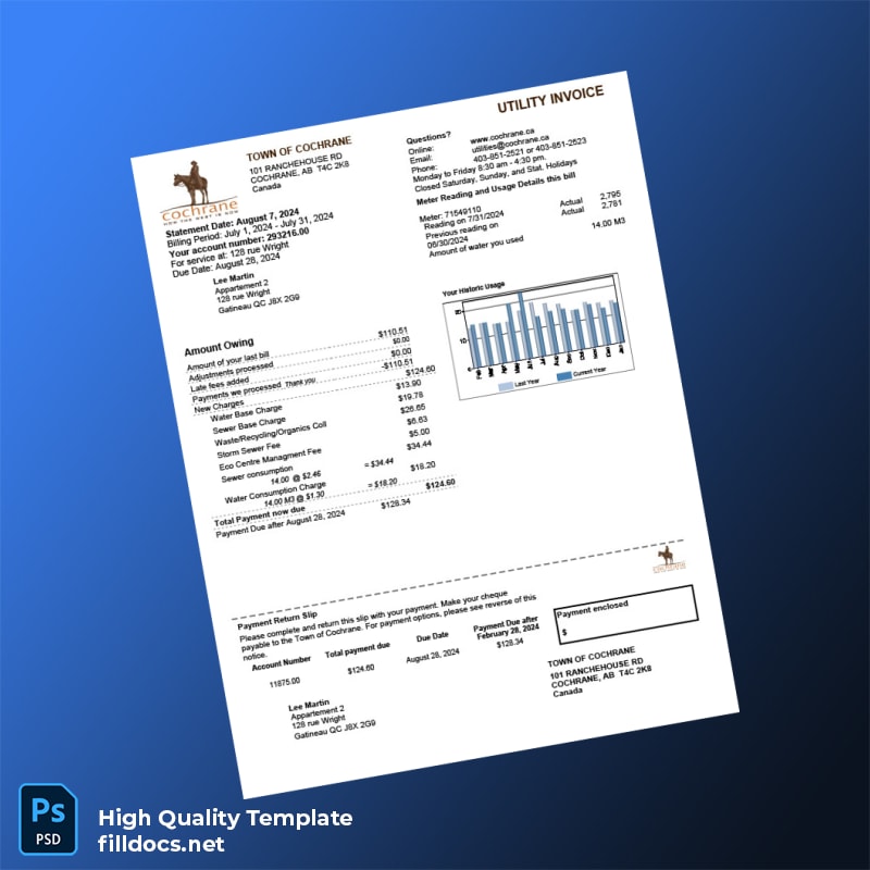 Canada Town Of Cochrane Editable Water Bill Template – Professional Utility Bill Solution