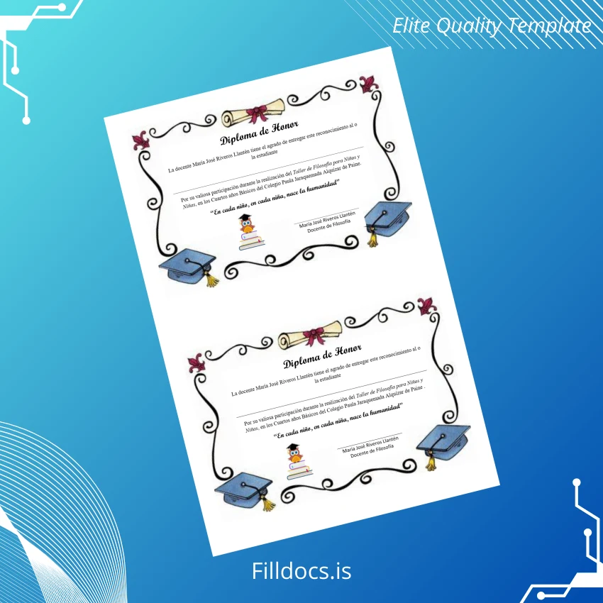 This fillable diploma template is a fully customizable document tailored to reflect the prestigious honor diplomas from Colegio Paula Jaraquemada Alquízar. Whether you require a replacement diploma template or want an original printable certificate, this product enables you to present official-looking awards with ease and accuracy. It is designed for professionals who demand both authenticity in design and flexibility in usage.