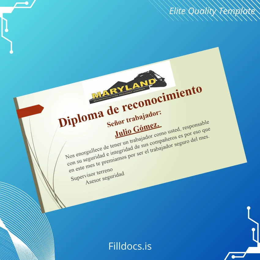 Discover the Chile Maryland Company Worker Recognition Diploma Template – Word/PDF, a professional and fillable certificate designed to honor employee achievements with ease and elegance. This digital diploma download provides a versatile solution for creating personalized recognition awards suitable for various corporate events and company milestones.