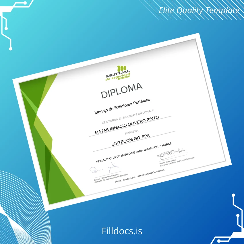 Discover the Chile Sirtecom GIT SPA Diploma in Portable Extinguisher Management Template – Word/PDF, a versatile and fillable document crafted for professionals seeking a seamless solution to create authentic diploma certificates. This template caters to users who require an editable and customizable design for replacement diplomas, blank forms, or novelty documents, combining convenience with professional standards.
