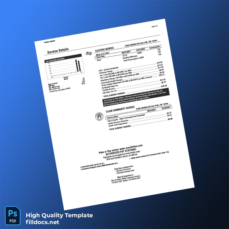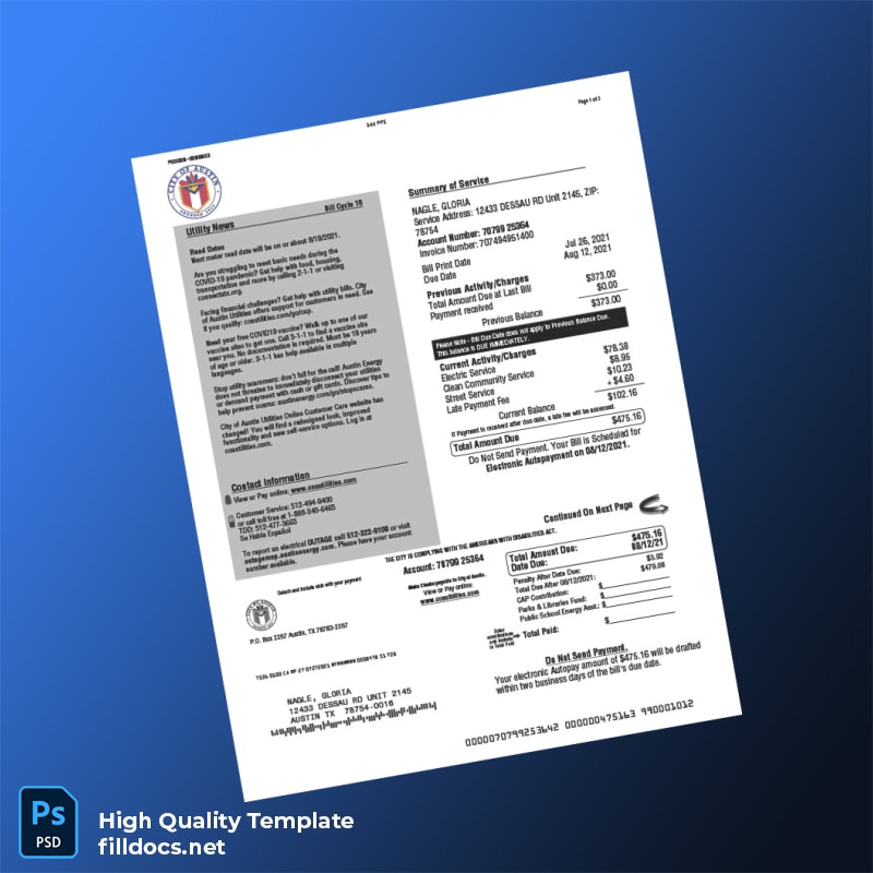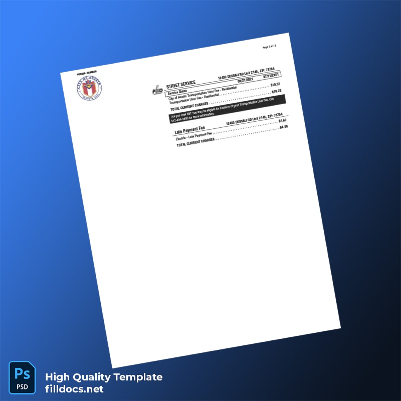 City Of Austin Editable Utility Bill Template in Word and PDF Formats