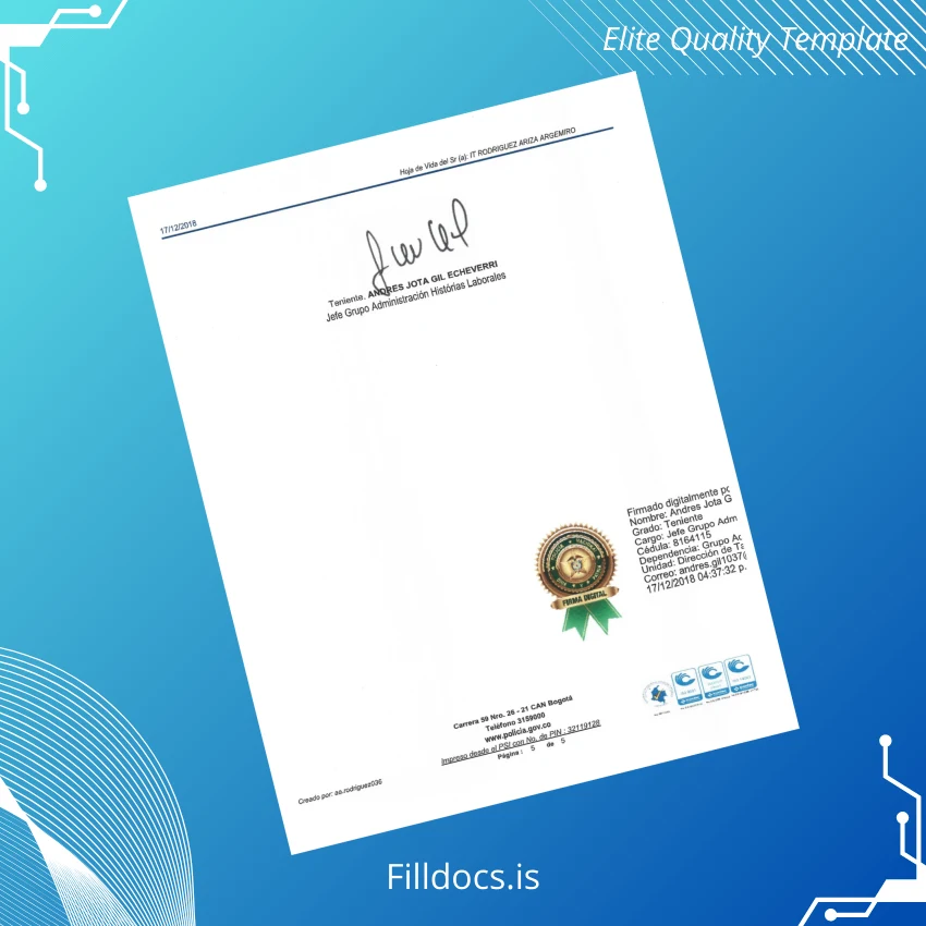 Colombia Policía Nacional Teniente Diploma Template – High Quality Word & PDF