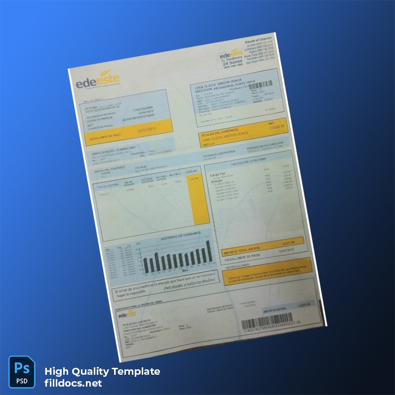 Dominican Republic EDE Este Editable Electricity Bill Template in Word and PDF