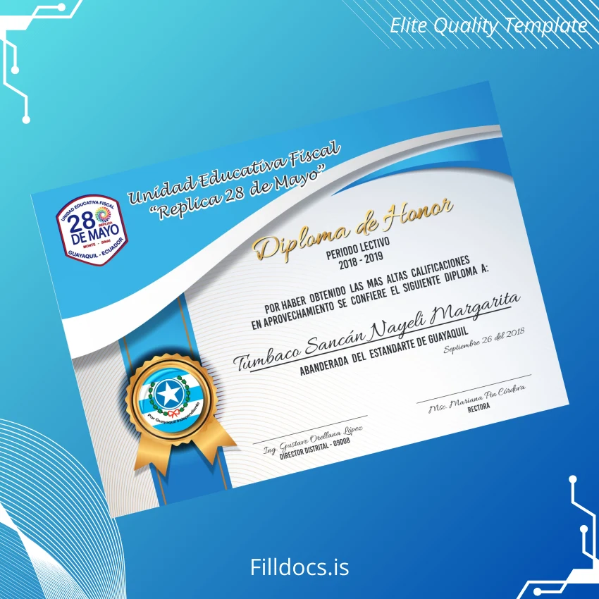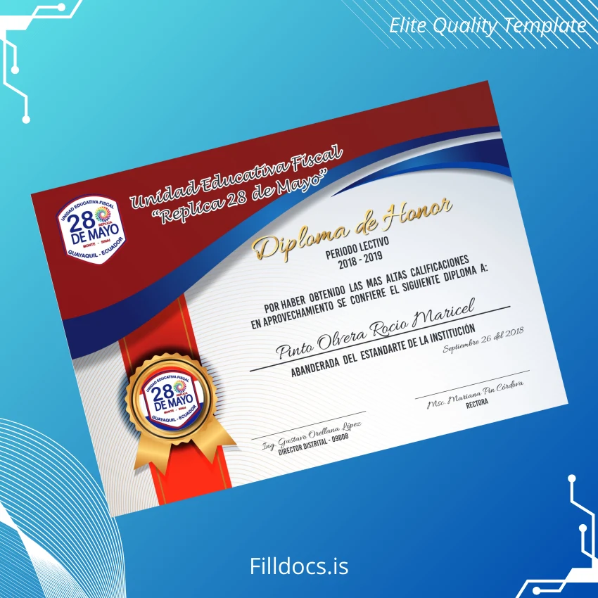 Ecuador Unidad Educativa Fiscal _Replica 28 de Mayo_ Honor Diploma Template – High Quality Word & PDF 3 Page