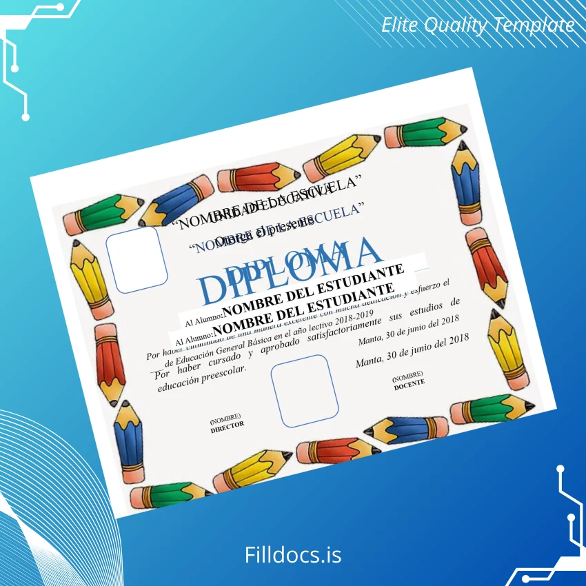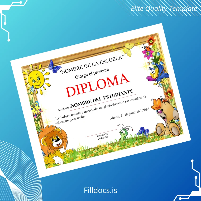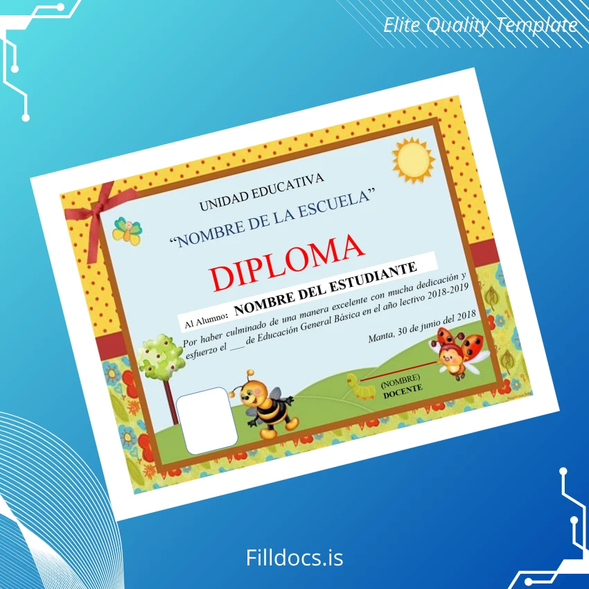 Discover the Ecuador Unidad Educativa Los Andes Diploma in Initial Education Template – Word/PDF, a professional and customizable document designed for educators and administrative professionals who require a high-quality replacement or novel diploma layout. This fillable template offers both Word and PDF formats, allowing effortless editing to personalize diploma details with precision and ease.