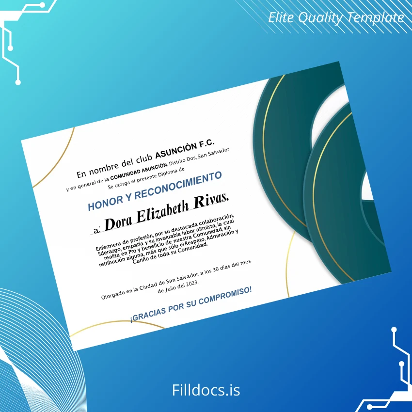 Fillable El Salvador Asuncion F.C. Honor and Recognition Diploma Template – Word/PDF for easy professional customization and print-ready certificates.