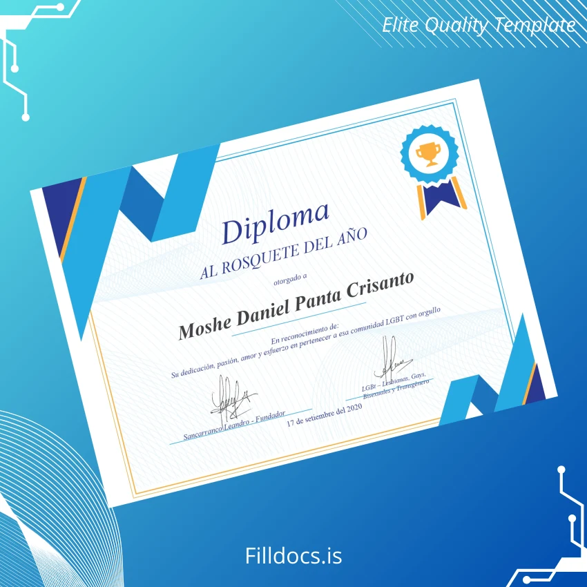 The El Salvador LGBT Rosquete del Año Certificate Template – Word/PDF is a meticulously designed, fillable diploma template crafted for professionals and organizations seeking a customizable and high-quality certificate solution. This digital asset caters to those who need an elegant and novel diploma design, suitable for both official recognition and creative commemorations.