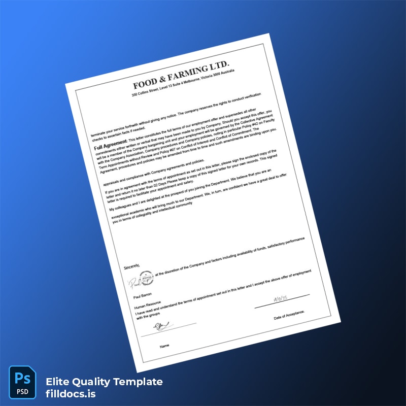 Streamline Your Employment Verification Process with the Australia Food Farming LTD Template