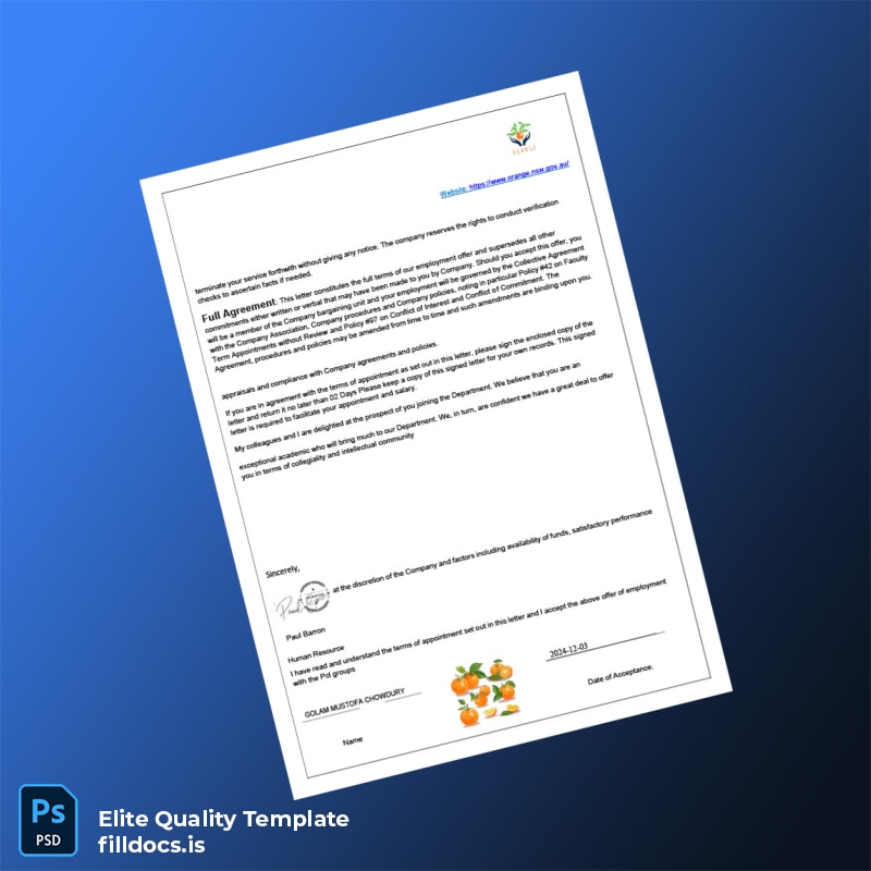 Don’t let employment documentation hold back your operational efficiency or professional credibility. Download the fillable Australia Orange Botanic Gardens Employment Verification Letter Template – Word/PDF now to experience unmatched convenience, precision, and a polished look in your employment verification letters. Take control of your HR documentation with confidence and ease.