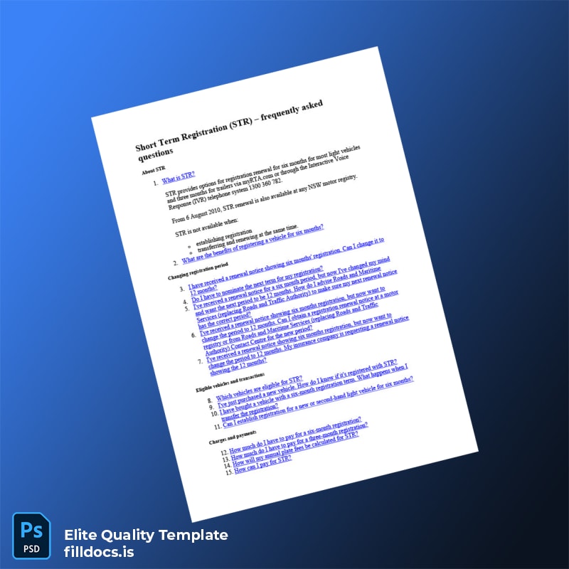 Managing short-term vehicle registration documentation can be a time-consuming challenge, especially when you need quick and professional solutions. Our Australia Roads and Maritime Services Short Term Registration Certificate Template available in Word and PDF formats offers a highly accessible, editable registration certificate designed for professionals who demand accuracy and efficiency.