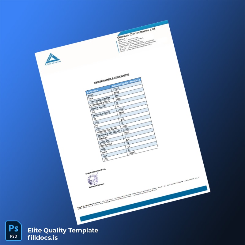 Download this fillable Genius Consultants Ltd Employment Verification Letter Word and PDF Template now and start customizing your employment verification letters with ease and precision.