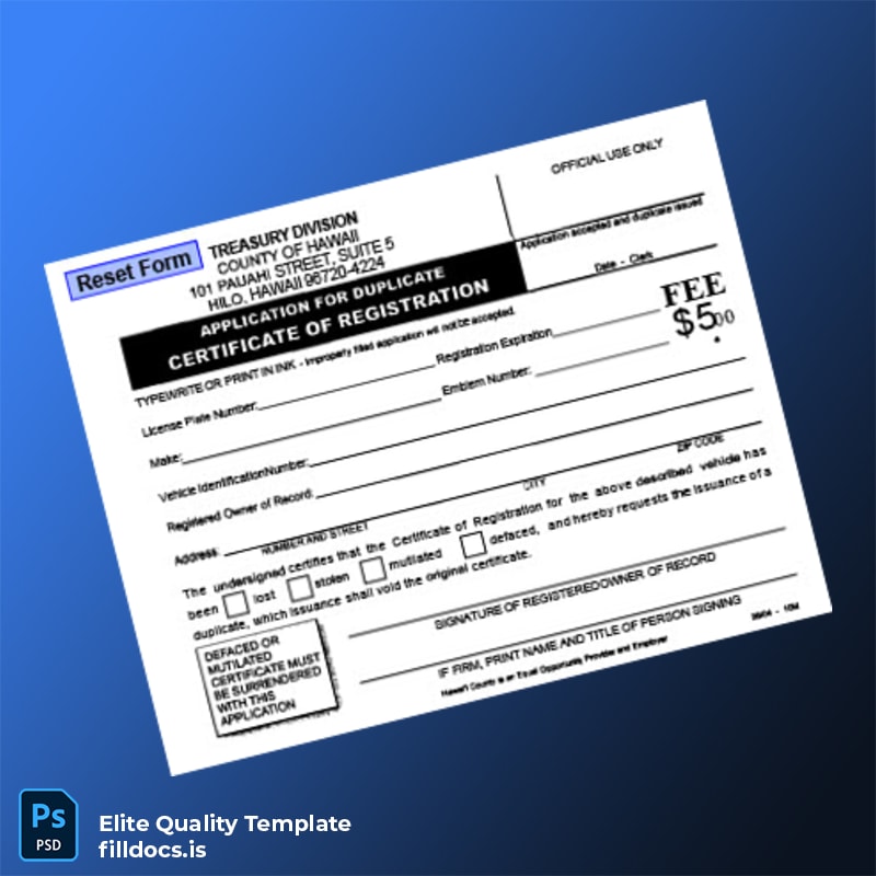 Carefully formatted to meet Hawaii’s Treasury Division standards, the template ensures your duplicate application looks professional and meets all official requirements.