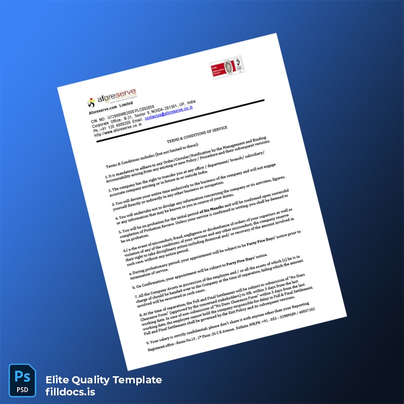 Don’t let document verification slow down your operations. Invest in the India Aforeserve com Limited Employment Verification Letter Template—an indispensable resource for prompt, accurate, and professional employment confirmation. Download now to experience a hassle-free, editable solution designed to meet your organizational needs and maintain high standards of verification integrity.