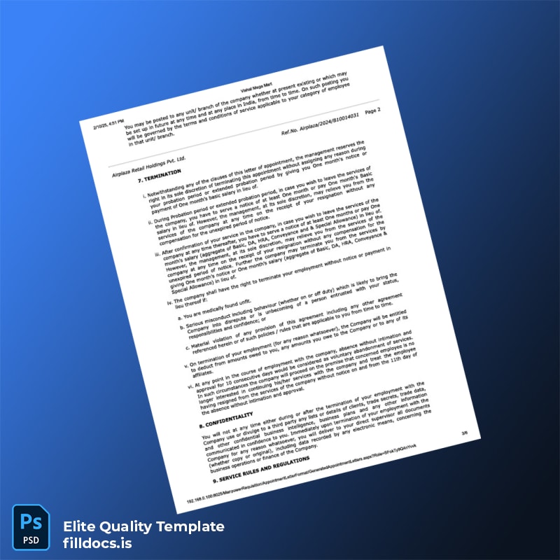 Be the first to review “Fillable India Airplaza Retail Holdings Pvt Ltd Appointment Letter Template – Word/PDF 6 page”