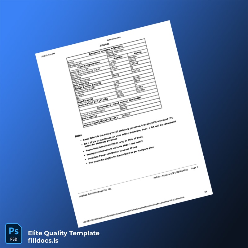 Fillable India Airplaza Retail Holdings Pvt Ltd Appointment Letter Template – Word/PDF 6 page