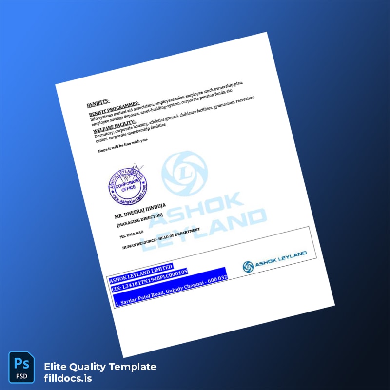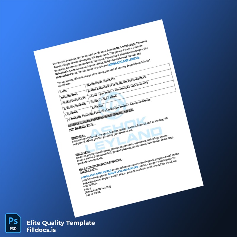 Be the first to review “Fillable India Ashok Leyland Limited Employment Confirmation Letter Template – Word/PDF 3 page”