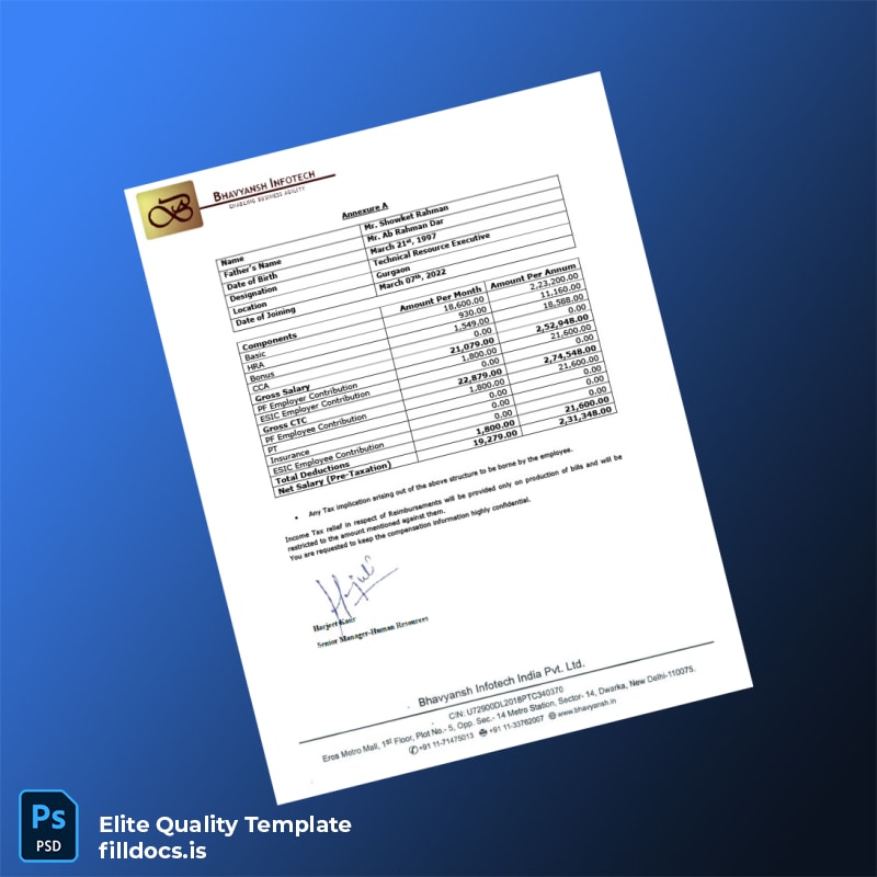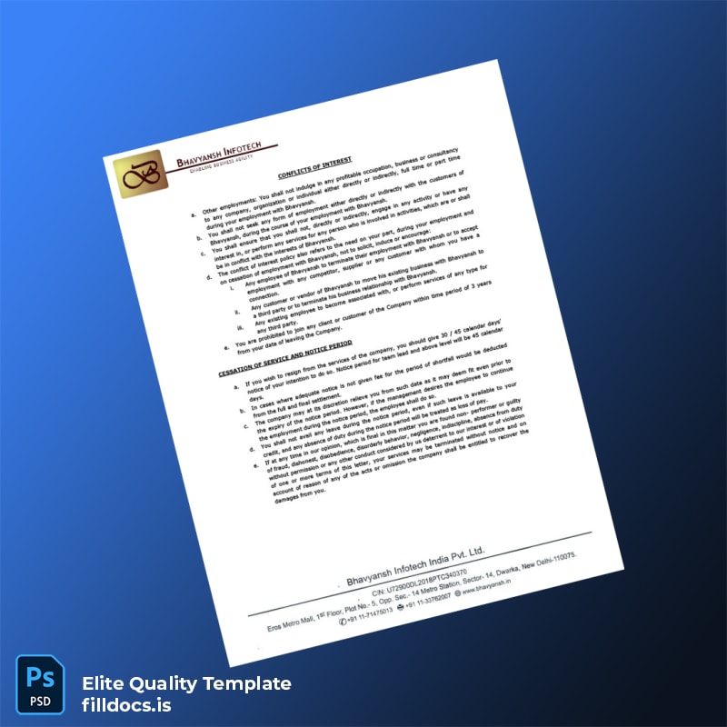 Fillable India Bhavyansh Infotech Services Pvt Ltd Employment Verification Letter Template – Word/PDF 6 page