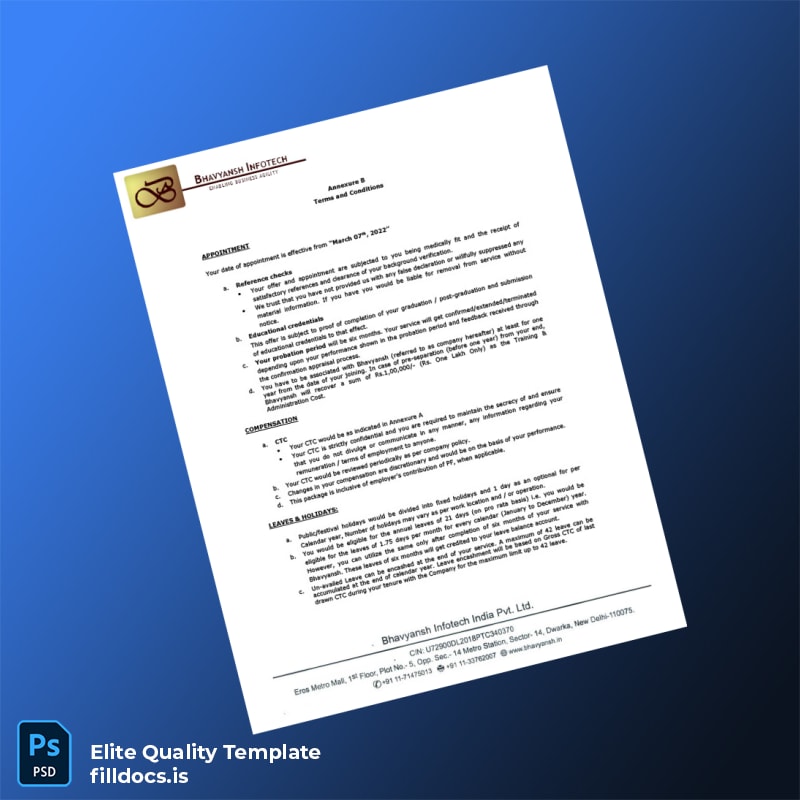Be the first to review “Fillable India Bhavyansh Infotech Services Pvt Ltd Employment Verification Letter Template – Word/PDF 6 page”