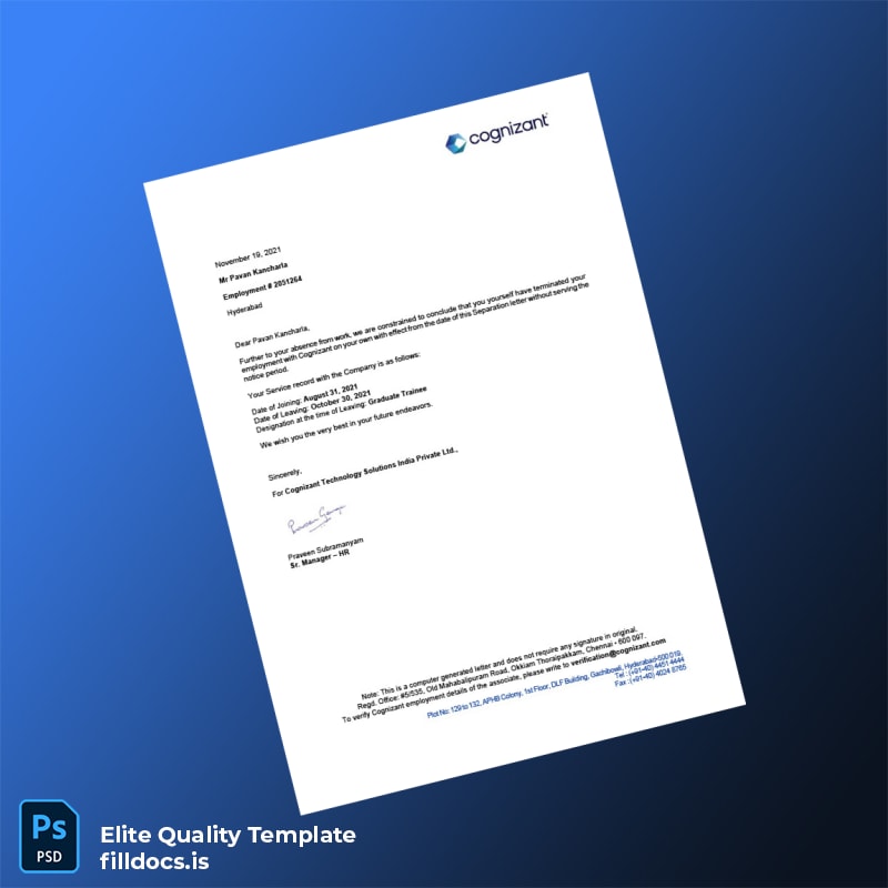 Professional India Cognizant Experience Letter Template – Word/PDF