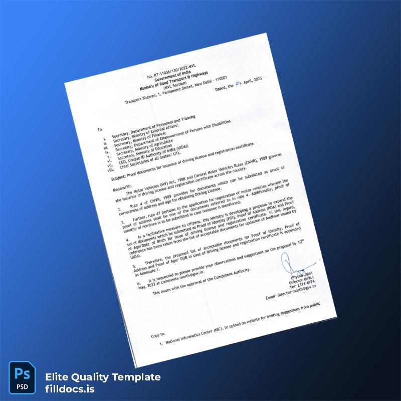 When time is of the essence and you need to reconstruct critical documents like your driving license or registration certificate, our Fillable India Directorate of Motor Vehicles Driving License and Registration Certificate Word and PDF Template offers a swift and professional solution. Designed to help professionals and individuals alike, this editable template enables you to quickly regenerate official documents without hassle.