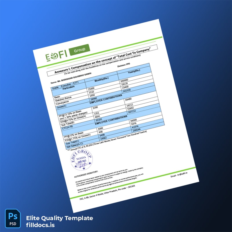 Fillable India EDFI Group Employment Verification Letter Template – Word/PDF 2 page