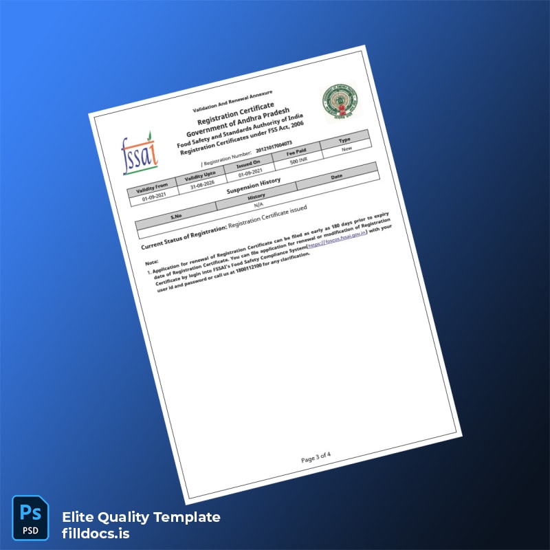 Streamline Your Business Registration with Our Editable India Food Safety and Standards Authority Certificate Template