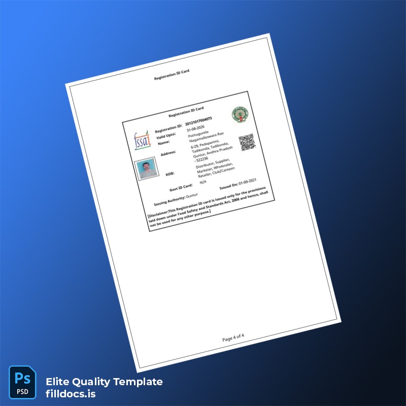 Launching or managing a food business in India demands precise and compliant documentation. Our editable registration certificate template offers a seamless solution tailored for professionals seeking a swift and reliable way to obtain an official business registration certificate. Crafted for ease and professionalism, this template is the perfect tool for entrepreneurs, small business owners, and compliance officers who need an authentic-looking document without delays.
