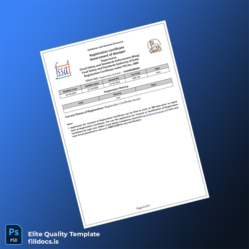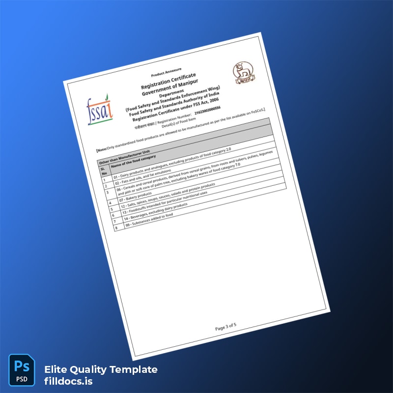 Secure your business compliance with our Fillable India Food Safety and Standards Authority Registration Certificate Template, available in convenient Word and PDF formats. Designed for professionals and business owners seeking a swift, professional solution, this editable certificate template streamlines the process of producing authentic-looking registration documentation.