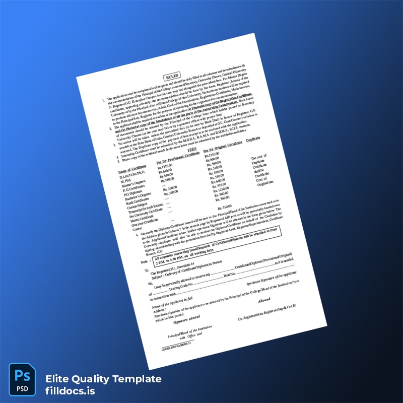 This solution is ideal for professionals who often face the urgency of document replacement due to loss or expiration or who need to expedite certification processes without compromising accuracy. Eliminating common complications, the template helps avoid manual errors, minimizes administrative delays, and ensures compliance with Gauhati University’s application criteria. Its fillable fields make data entry intuitive and fast, enhancing user experience and productivity.