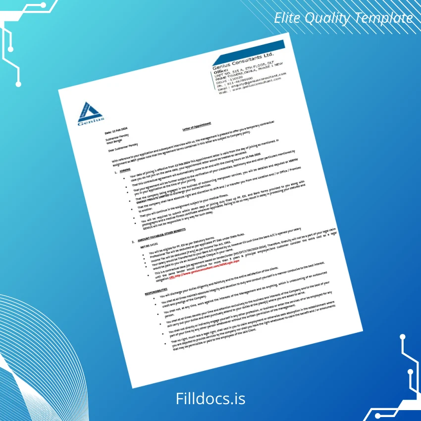 Don’t struggle with outdated or complicated documents. Download the India Genius Consultants Employment Verification Letter Template – Word/PDF to empower your HR processes with ease and precision. Perfect for busy professionals requiring a reliable, fillable, and legally sound template, this tool ensures your verification letters are always accurate and professionally presented.
