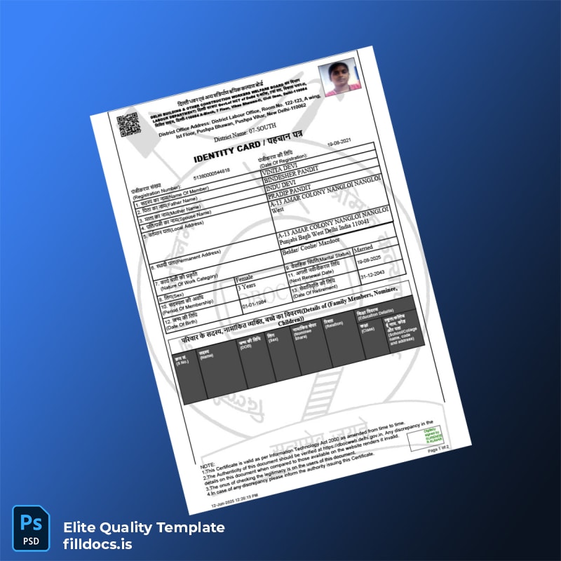 Fillable India Identity Card Registration Certificate Template – Word/PDF 2 page