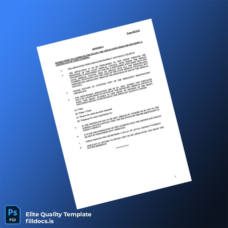 Fillable India Medical Council Certificate of Good Standing Template – Word/PDF 5 page