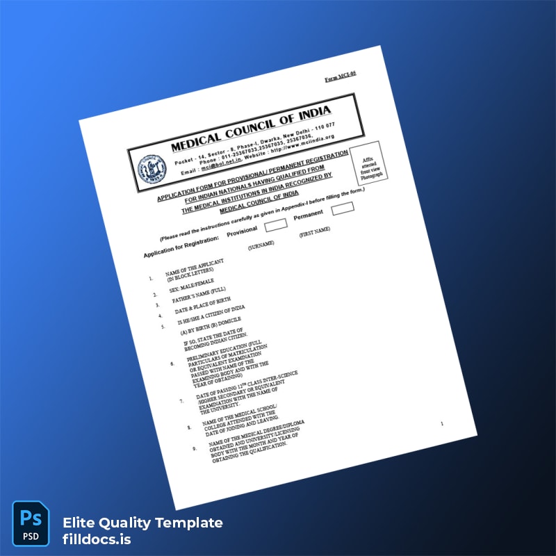 Professional and reliable registration is crucial for medical practitioners in India, especially when dealing with provisional and permanent registration forms. The India Medical Council Provisional Permanent Registration Form Template, available in editable Word and PDF formats, is designed to simplify the entire registration process by offering a user-friendly, fillable document that saves time and reduces errors.