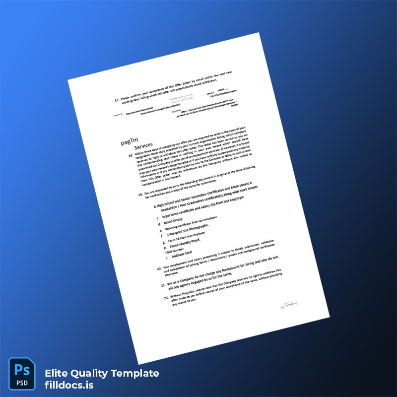 By choosing this India Paytm Employment Verification Letter Template, you gain a straightforward solution that enhances your professionalism and saves valuable time. Get started now and secure your employment verification with a template that adapts to your requirements and presents your proof of employment in the most effective way.