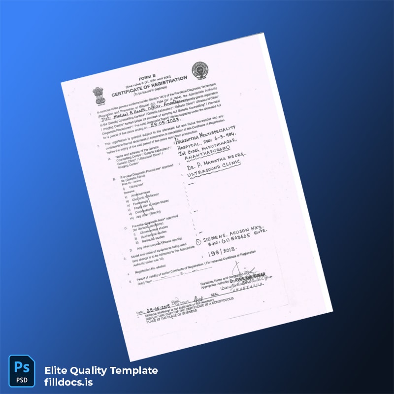 Imagine a clinic administrator who lost their original PCPNDT registration certificate and needed an immediate replacement to continue legal operations. By utilizing this expertly crafted, fillable template from our editable registration certificate collection, they swiftly updated essential details, avoided legal complications, and restored confidence with an accurate, ready-to-print document.