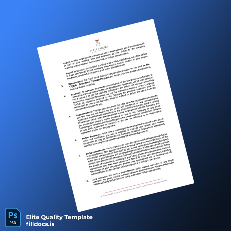 Be the first to review “Fillable India Plate Project Hospitality Employment Verification Letter Template – Word/PDF 3 page”