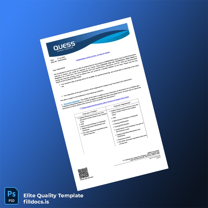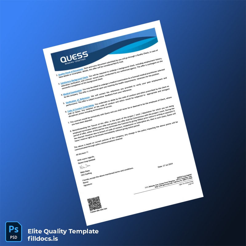 Fillable India QUES Employment Verification Letter Template – Word/PDF 6 page
