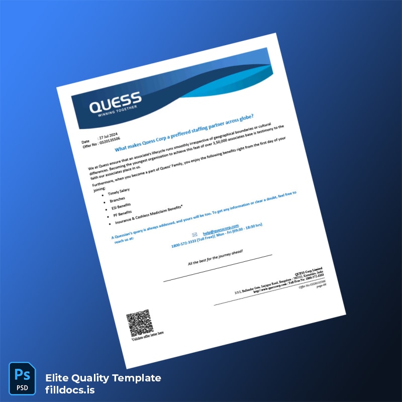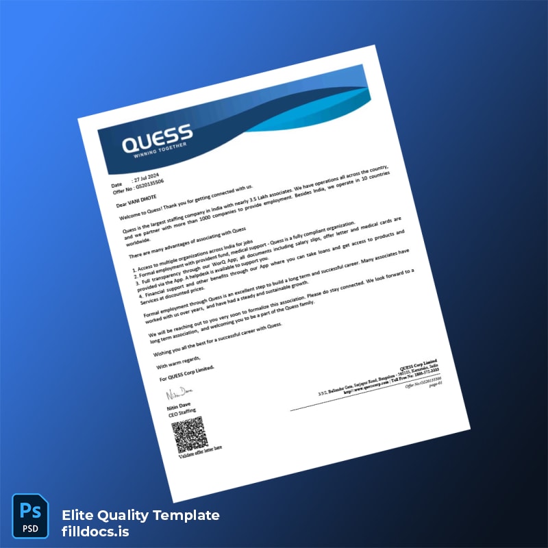 Fillable India QUES Employment Verification Letter Word and PDF Template—easily customize your proof of employment with this professional, editable solution.