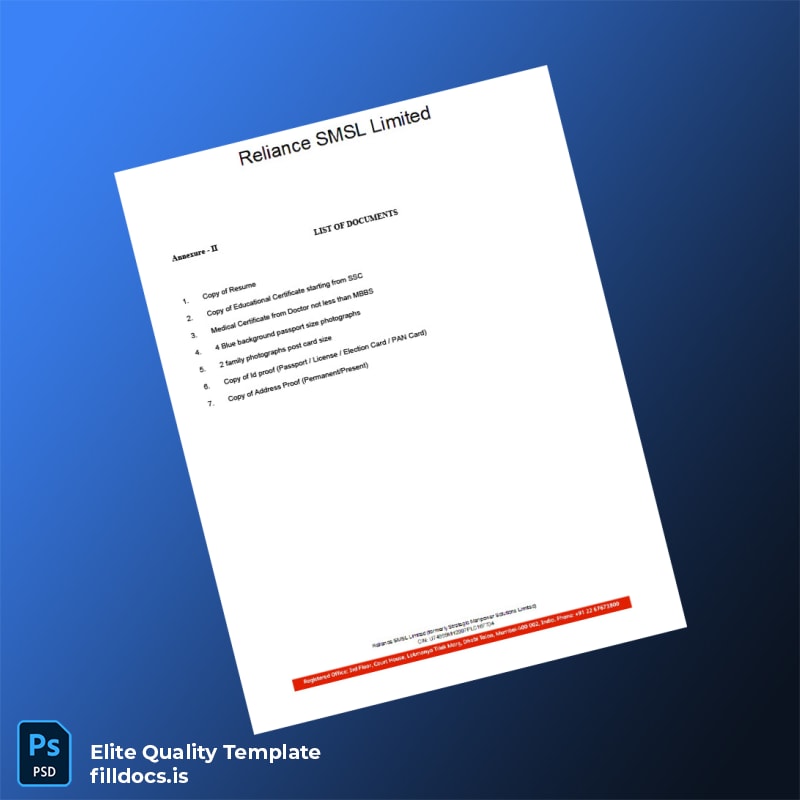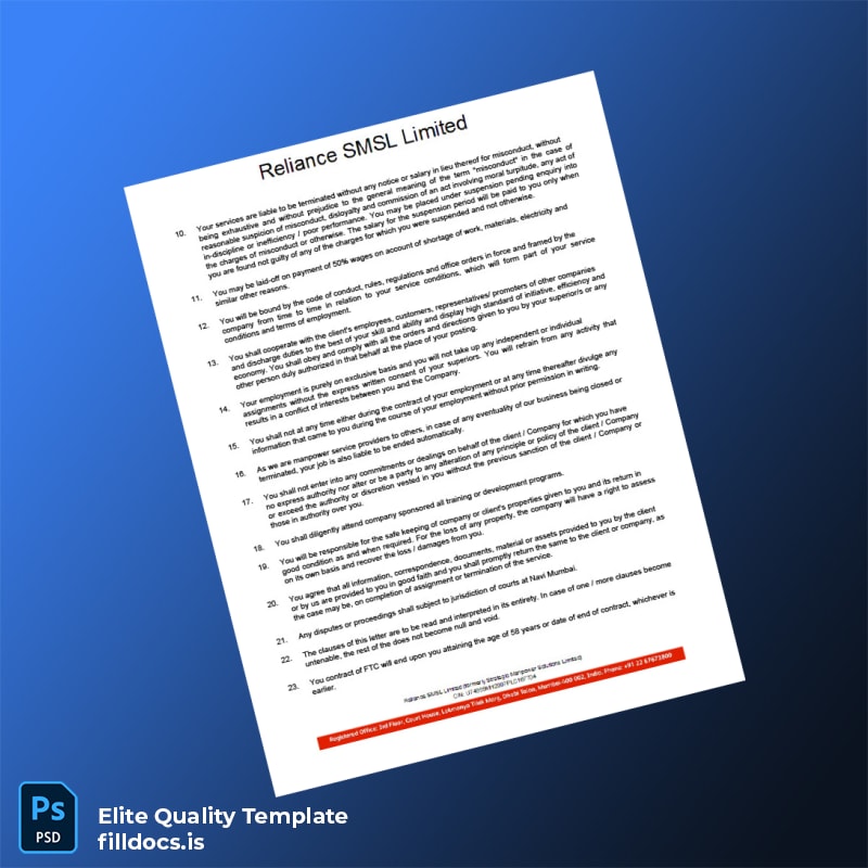 Fillable India Reliance SMSL Limited Employment Verification Letter Template – Word/PDF 6 page