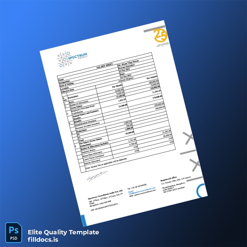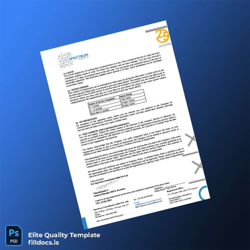 Fillable India Spectrum Consultants India Pvt Ltd Employment Verification Letter Template – Word/PDF 4 page