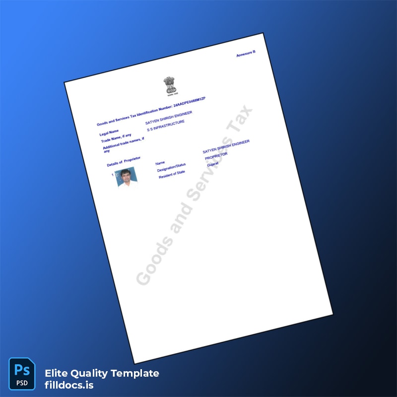 With this certificate template, the headaches associated with manual entry and reformatting vanish. It guarantees compliance with India’s state tax office requirements while offering total control over your registration certificates in a user-friendly format.